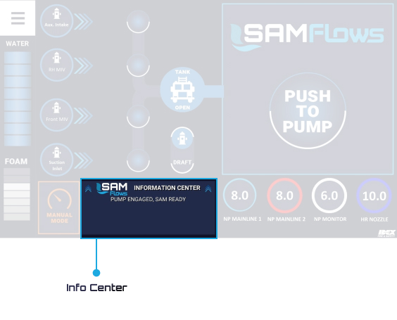 The SAM info center provides the operator with notifications and alerts. It will show status of what is happening in the system as well as display any alerts that the operator may need to know.