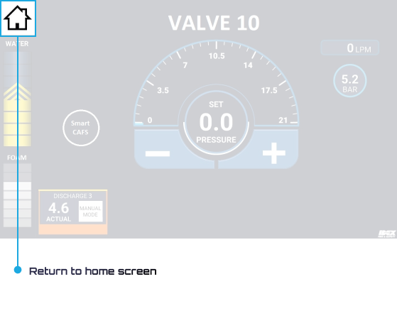 There are two ways to return to the home screen. If the operator sets a new discharge pressure and confirms that set pressure then the system will return to the home screen. If they don’t want to make any changes, they can simply tap the home icon in the upper left corner.