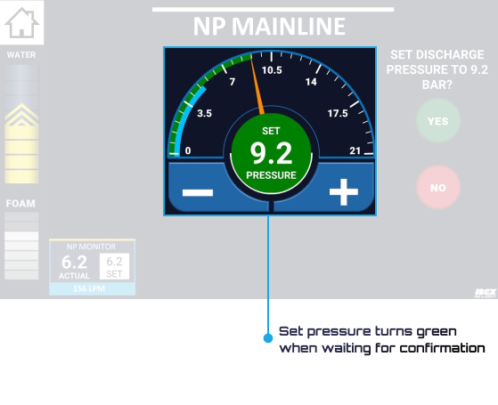 As soon as the operator adjusts the set pressure for the discharge, the set pressure circle turns green indicating that the pressure has been changed.